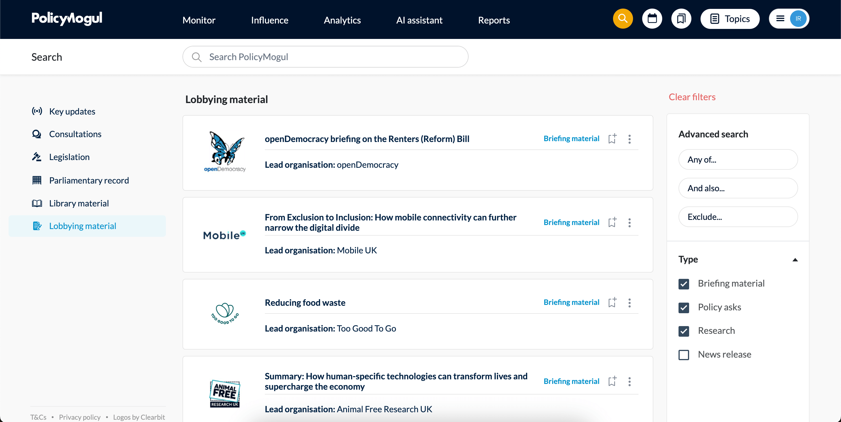 Hundreds of policymakers use PolicyMogul to identify briefing material, news releases, policy asks and other lobbying material relevant to their interests.